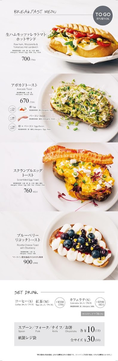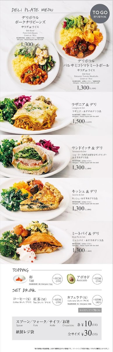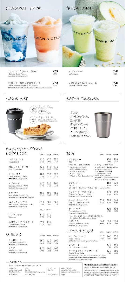 DEAN & DELUCA Cafe Nihombashi Takashimaya S.C. Menu